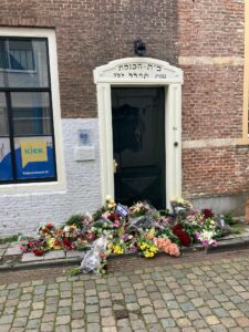 De hakenkruizen op de vriendelijke totaal onschuldige synagoge van Middelburg hebben mij afgelopen dagen beziggehouden. Duidelijk is dat het niet toevallig een voorbijganger was die plotseling dacht “ik heb even niets te doen dus laat ik maar een hakenkruis aanbrengen” en toevallig had hij een spuitbus bij zich en wederom zeer toevallig stond hij net voor de synagoge van Middelburg. Maar of de bekladder extreemrechts is of extreem-links, gewoon extreem sukkelig of product van een moeizame opvoeding, is momenteel nog niet bekend en dus moeten we oppassen met het trekken van conclusies. Maar hoe je het ook draait, wendt of keert, de bekladding is niet goed, maar heeft toch ook iets moois opgeleverd: een zee aan bloemen.
