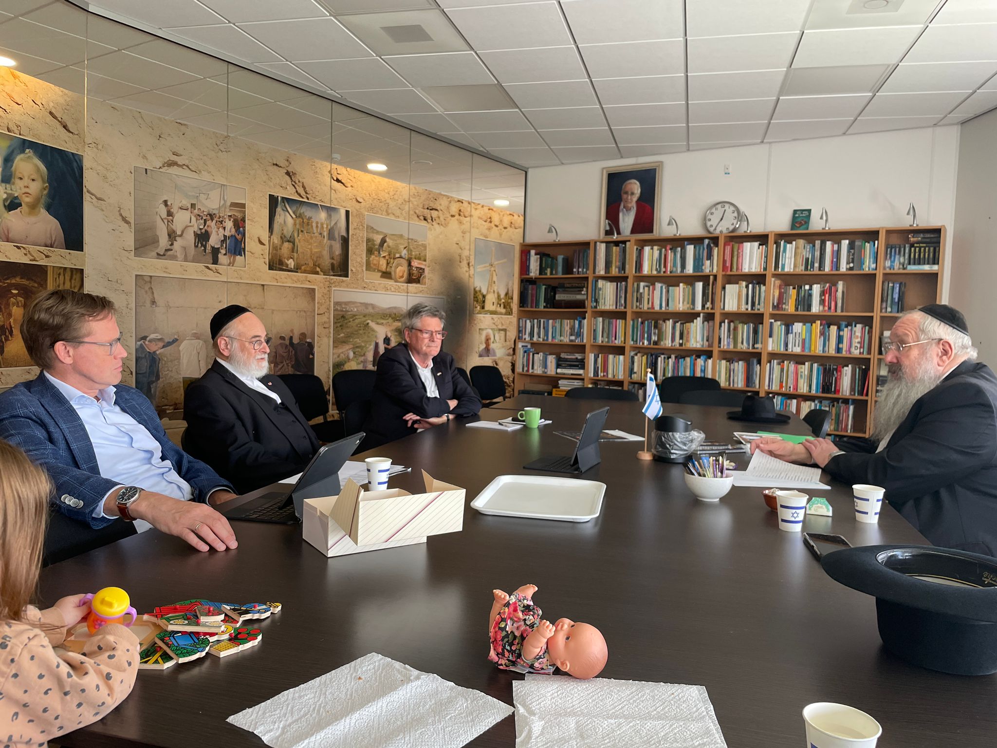 Maar ik stop nog niet, omdat ik wil vermelden dat we hoog bezoek hadden. Rabbijn Sholom Duchman, de directeur van Colel Chabad. Colel Chabad klinkt erg Chabad, maar is dat de facto helemaal niet. Colel Chabad verzamelt in de hele wereld geld voor mensen in nood die in Israël woonachtig zijn. Ook in Israël heerst op zeer veel plaatsen armoede, zijn er mensen met een verstandelijke handicap, zijn helaas velen die ledematen hebben verloren vanwege de oorlogen, gezinnen zonder vaders, bestaat behoefte aan psychologen en psychiaters. Colel Chabad helpt daar waar geholpen moet worden, zeker na 7 oktober. En als er financiën nodig zijn om projecten in Israël te steunen, tot wie kunnen we ons dan wenden? Wie zijn de grootste donateurs voor Israël in ons land? Ook in een tijd waarin de meerderheid van onze Nederlandse bevolking zich tegen Israël keert? Antisemitisme hoogtij viert? Christenen voor Israël! Niet-Joden die achter Israël stonden, staan en zullen blijven staan. Overigens niet alleen áchter Israël, maar ook vóór, links en rechts van. Rabbijn Duchman heeft het IPC- Israël Producten Centrum wederom bezocht om zijn dankbaarheid kenbaar te maken voor de geweldige steun van de afgelopen jaren. Duchman was zeer onder de indruk van de onnavolgbare inzet van CvI ten behoeve van bijna alle vormen van hulp aan Israël. Maar even zozeer was de directie van CvI vol bewondering voor de manier waarop Duchman zich inzet. Met hart en ziel, vol toewijding, dag en nacht. Voor mij gold het als een eer om samen met hem een paar uur te mogen optrekken en samen met mijn niet-Joodse vrienden Colel Chabad te mogen steunen.