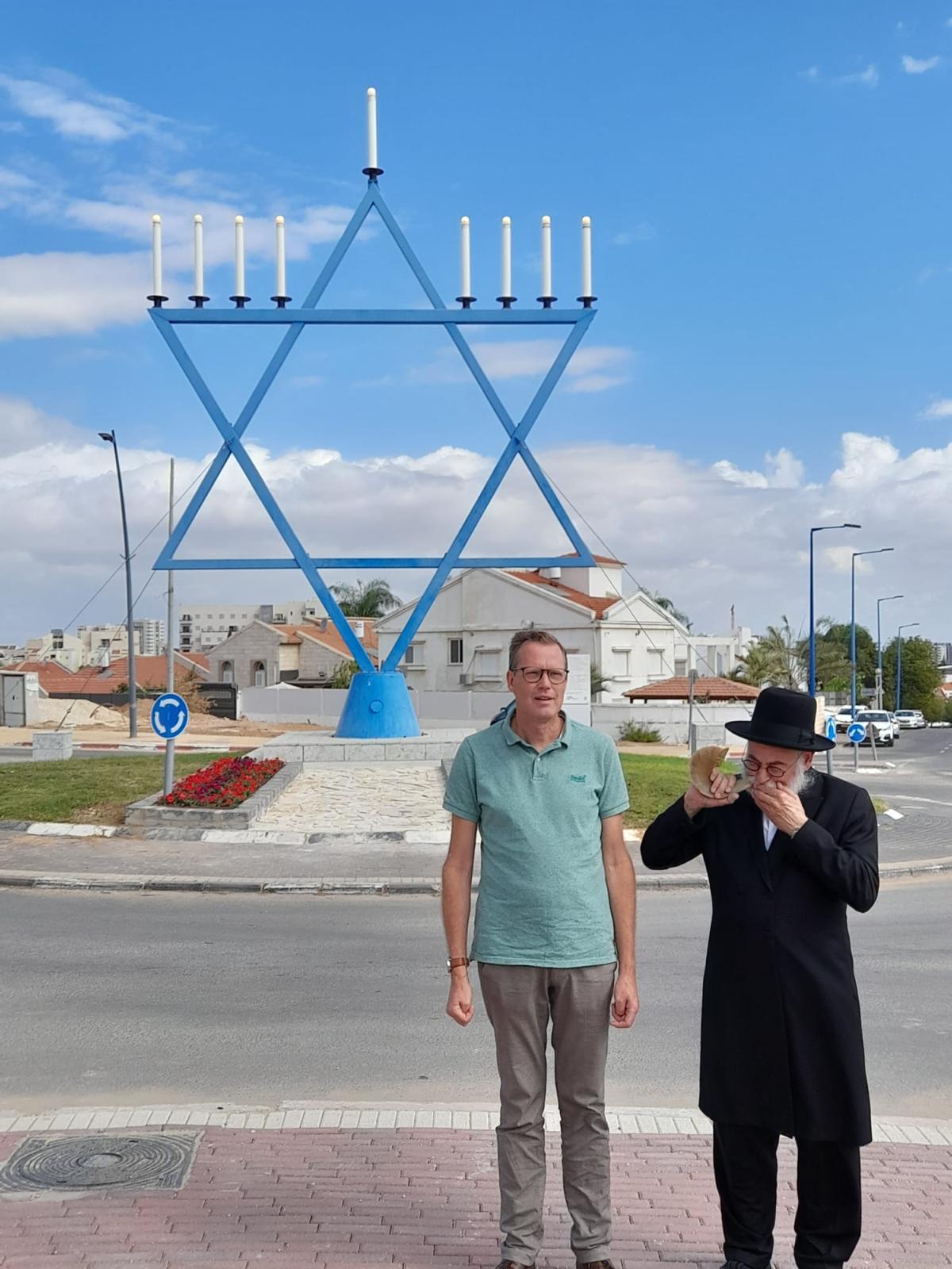 En ondertussen zitten we in de maand Elloel, de maand van voorbereiding voor de Hoge Feestdagen. Dagelijks blazen we op de sjofar, de ramshoorn. De reden van dit sjofarblazen? Maimonides geeft aan dat er geen reden is. Het staat in de Thora dat er op Rosj Hasjana, Joods Nieuwjaar, op de sjofar geblazen moet worden: en dus blazen Joden al eeuwen en eeuwen, zelfs in de meest moeizame omstandigheden. Maar, gaat Maimonides verder in zijn uitleg over de sjofar, ondanks het ontbreken van een rationele verklaring, zit er wel een aanwijzing in de sjofar: wordt wakker! Met een scala aan tegenstrijdige gevoelens blies ik op de sjofar voor de grote uit Nederland afkomstige Menora in Sderot met naast mij Frank van Oordt, de directeur van christenen voor Israël.