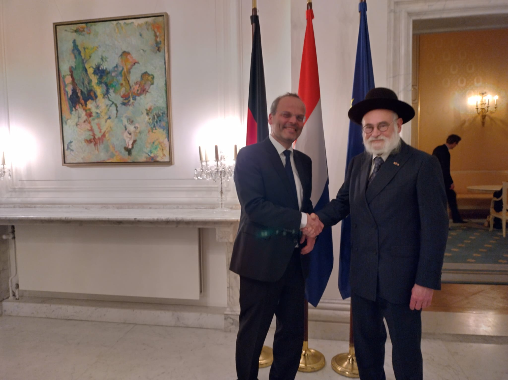 Gisteravond waren wij naar een bijeenkomst op de Duitse Ambassade. Om 19:00 uur was de inloop en het strijkconcert begon om 19:30 uur. De musici speelden uitsluitend muziekstukken van Joodse componisten. De gedachte hierachter was om te tonen dat Jodendom zich niet beperkt tot antisemitisme, maar dat Jodendom veel en veel meer is dan antisemitisme. Een van de vier musici was Dr. Felix Klein. Hij gaf bij ieder muziekstuk uitleg over de muziek en de Joodse componist. Felix Klein is Federal Government Commissioner for Jewish Life in Germany and the fight against Antisemitism, of anders geformuleerd: hij is de Duitse versie van Eddo Verdoner, onze Nationale Coördinator Antisemitisme Bestrijding. Bij het na-afloop kwam Klein naar me toe en vroeg mijn mening over de vredeambassadeurs die het Nationaal Comite 4-5 mei dit jaar heeft benoemd. Voor zover nog niet bekend: twee van deze Ambassadeurs voor Vrijheid hebben kenbaar gemaakt dat ze sympathiseren met de pro-Palestine beweging en dat valt uiteraard niet goed binnen Joods Nederland. Hoe zich dat gaat ontwikkelen zal nog moeten blijken, maar het is wel een lastige kwestie. Dr. Klein wilde mijn mening horen en goed begrijpen wat er speelt. Uiteraard, zijnde op de ambassade van Duitsland, kwam de kwestie Ysselsteyn ter sprake. Terwijl ik uitgebreid met Klein sprak, had Blouma een conversatie met de ambassadeurs van Croatia, Estonia en Polen en heeft ook nog geestelijke bijstand verleend. Een vrouwelijke ambassadeur (of heet dat ambassadrice, gelijk conducteur-conductrice) kwam naar haar toe en wilde even haar hart luchten. Het was op de dag af een jaar geleden dat haar dochter op 32-jarige leeftijd was overleden. Ze moest er met iemand over spreken en koos Blouma omdat zij de enige aanwezige vrouw was die zichtbaar de middelbare leeftijd was gepasseerd. Alleen voor dat pastorale gesprek was het al de moeite waard om naar dit concert te zijn gegaan. Wie weet waartoe zo’n ontmoeting kan leiden!